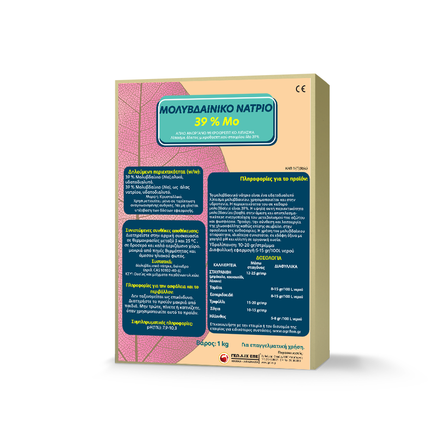 Sodium molybdate is a water-soluble molybdenum fertilizer (ammonium molybdate and sodium molybdate are the two types of molybdenum that can be used in hydroponics) and its content is 39%. This high molybdenum content contributes to the immediate and more effective prevention and/or correction of molybdenum deficiencies, the activation and function of nitrogen and phosphorus metabolism, the synthesis and function of chlorophyll as well as the homogeneity of flowering. The use of molybdenum in crops is essential, especially in those with acidic soils, low pH and low levels of organic matter, characteristic of which are high levels of molybdenum deficiencies.